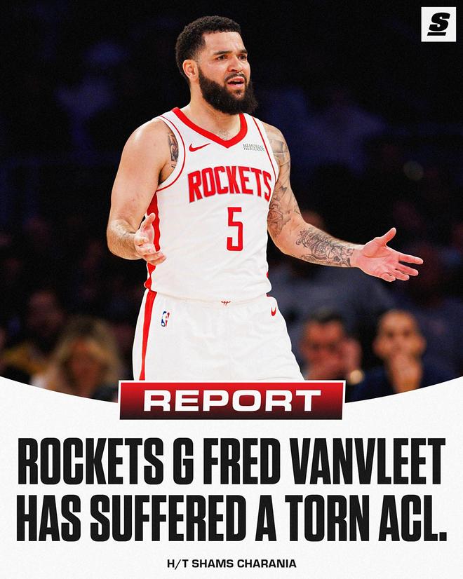 医学专家Evan Jeffries谈及范弗利特的伤情时表示:“弗雷德-范弗利特因前十字韧带撕裂将缺席火箭整个2025-26赛季的比赛。此类伤病的恢复时间通常是9-12个月。”