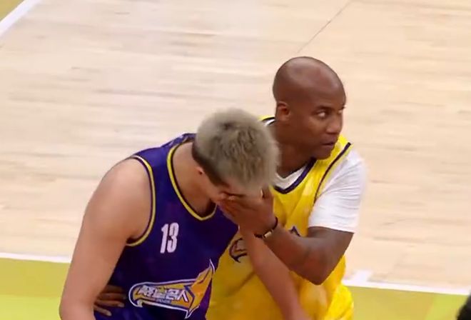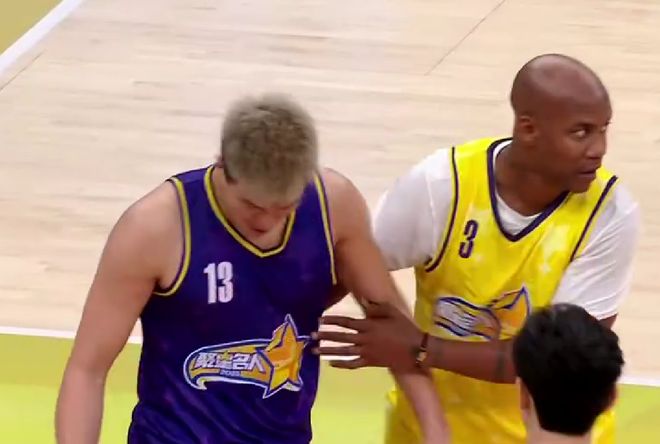而郭艾伦之所以在聚星名人赛上较劲,我觉得还有另外一个原因,那就是对面站着的是前NBA和CBA双料球星马布里。