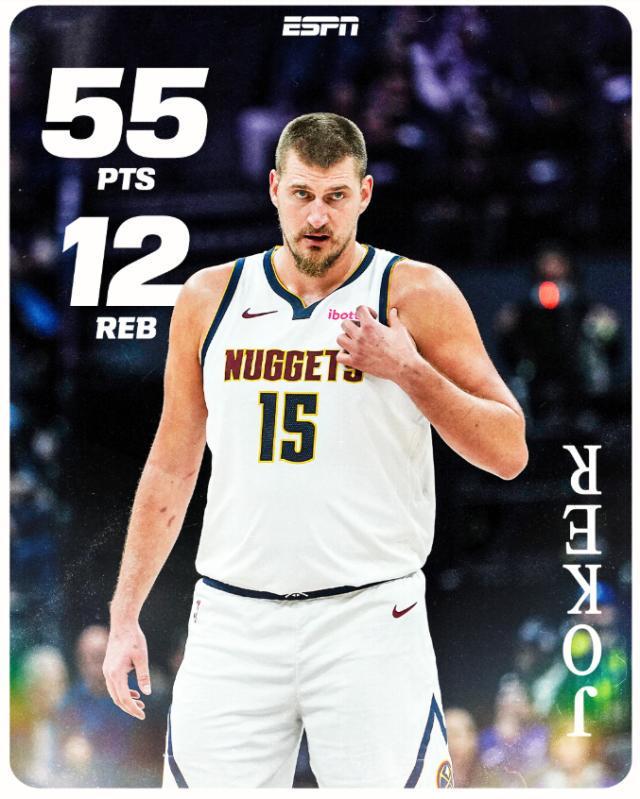 55分暴走+历史前三高效!约基奇一战刷爆多项神迹