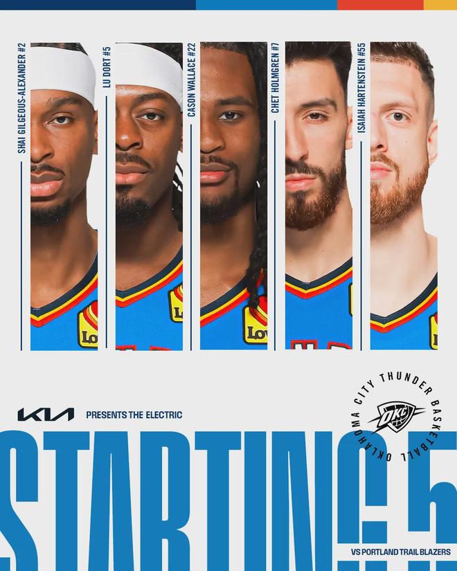 值得一提的是,雷霆本赛季唯一一场失利,正是开拓者所赐。克林根脚踝有伤,今天坚持出战。开拓者本场首发:西索科、阿夫迪亚、卡马拉、格兰特、克林根。雷霆首发:亚历山大、卡森-华莱士、多尔特、霍姆格伦、哈滕。