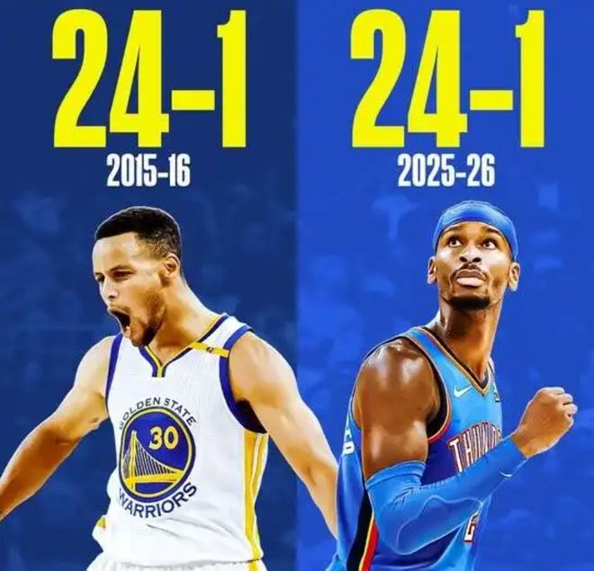 当然,西部也有球队高歌猛进,像是洛杉矶湖人队,尽管赛季初期球队大核心詹姆斯因为坐骨神经痛缺席了很长一段时间,但球队在东契奇和里夫斯的带领下,依旧打出了让人意外的表现,战绩一度冲到西部前二,让人惊叹。而最让人惊叹的,还是上赛季拿下总冠军的雷霆队,当他们主场49分狂胜太阳后,新赛季开局已经豪取24胜1负的队史最佳战绩,与此同时还追平2015-16赛季73胜勇士队,并列NBA历史第一位!