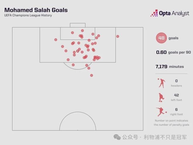 --萨拉赫的进球是他在欧冠的第48球,平均每90分钟打进0.6球。