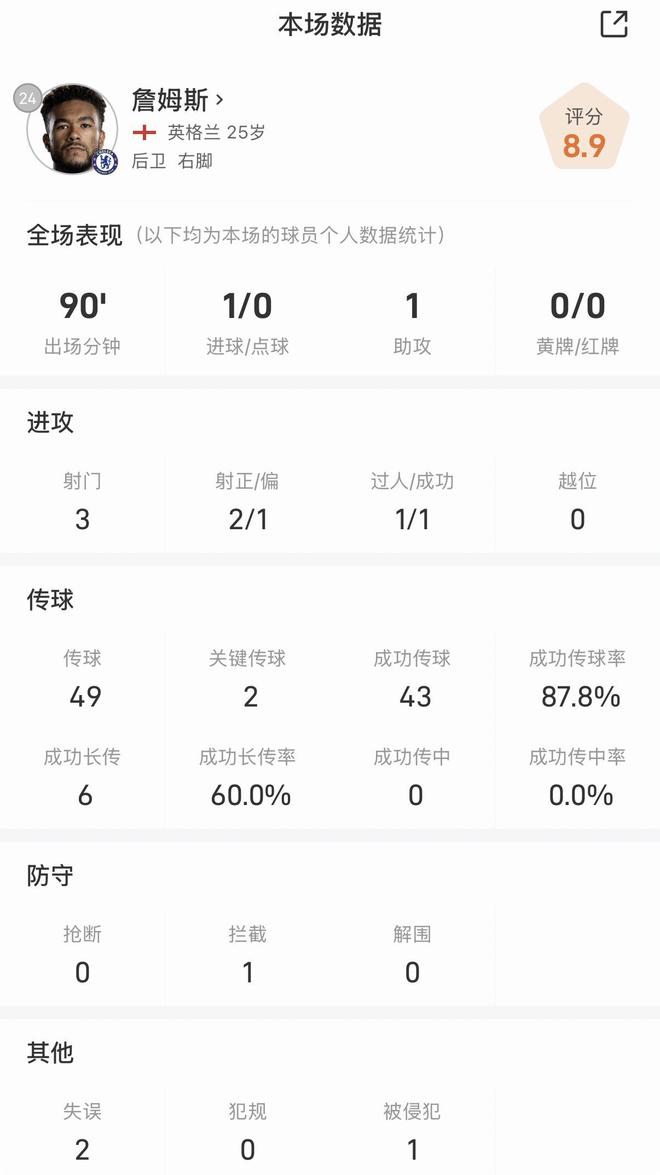 雷速体育10月18日宣 英超第8轮,切尔西在客场以3-0的比分战胜诺丁汉森林,队长里斯·詹姆斯200场里程碑之夜贡献传射。里斯·詹姆斯进球GIF 里斯·詹姆斯此役关键数据评分: 8.9