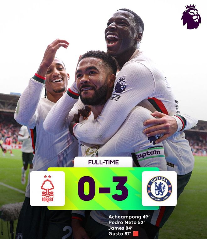 雷速体育10月18日宣 在今晚刚结束的英超第八轮的一场比赛中,诺丁汉森林主场0-3不敌切尔西,波斯特科格鲁依然没有迎来执教森林的首胜。本场比赛,为蓝军进球的分别是内托、小将阿昌庞以及里斯·詹姆斯。
