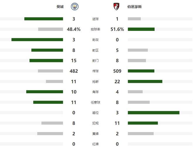 随着终场哨声的响起,曼城完成了英超主场对伯恩茅斯的九连胜,排名也超越后者,升至积分榜第二,落后领头羊阿森纳6个积分,赛季还很漫长,蓝月军团有足够的时间去追赶枪手。