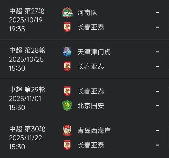 保级线18分!最后四轮长春将战天津国安,海牛将战海港国安