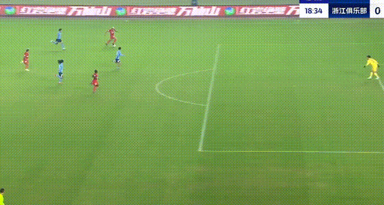 第90+2分钟,卡列洛破门梅开二度,浙江队绝平对手。