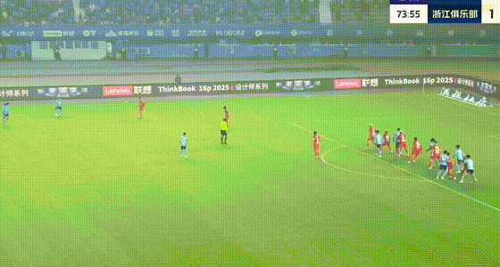 第55分钟,王钰栋突入禁区传中,卡列洛凌空将球踢进大门,浙江队扳平比分。