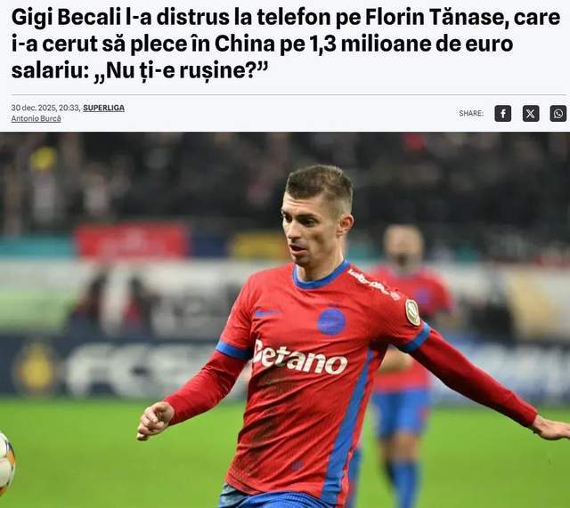 近日,罗马尼亚多家媒体爆料,中超已经向罗马尼亚现役国脚中场、罗甲联赛金靴得主特纳塞报价,年薪高达130万欧元,这份报价也直接惹怒了他的现东家布加勒斯快速队老板,让他退回本赛